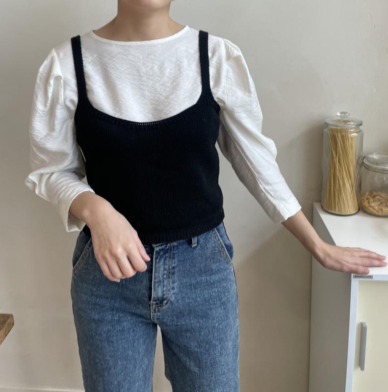 크롭 뷔스티에 탑 니트 조끼