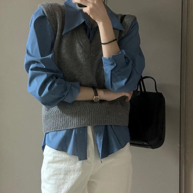 🔳 니트 조끼 & 아사면 린넨 블라우스 & 한복 실크스커트.