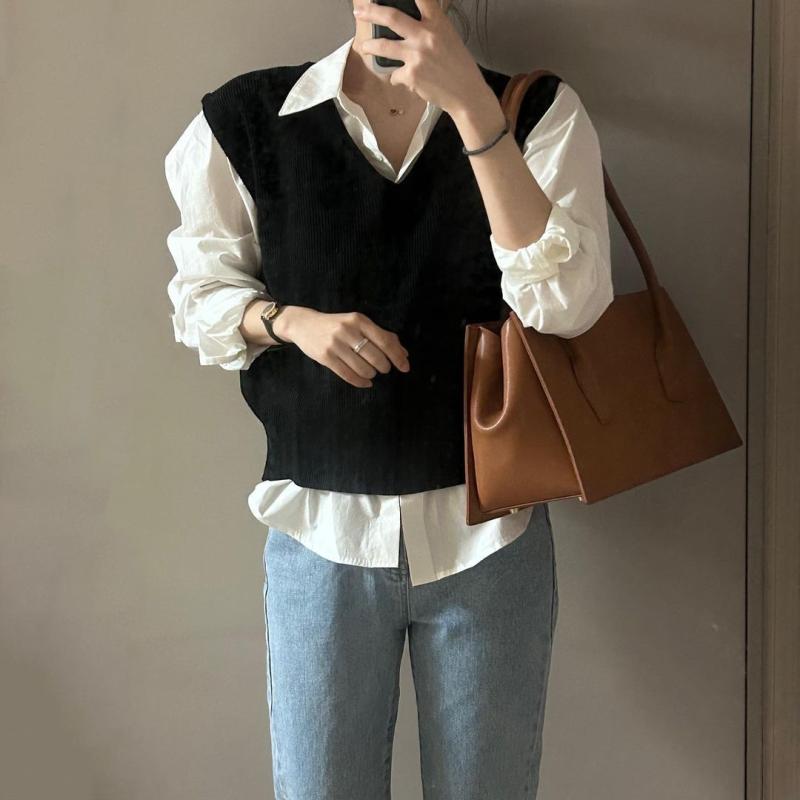 여성 니트 조끼 코디 풀오버 루즈핏 추동