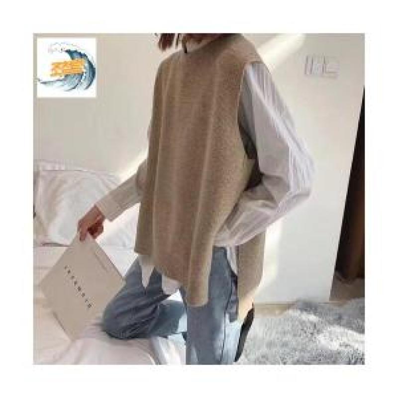 뒷트임 언발 니트조끼 코디탬 F66654