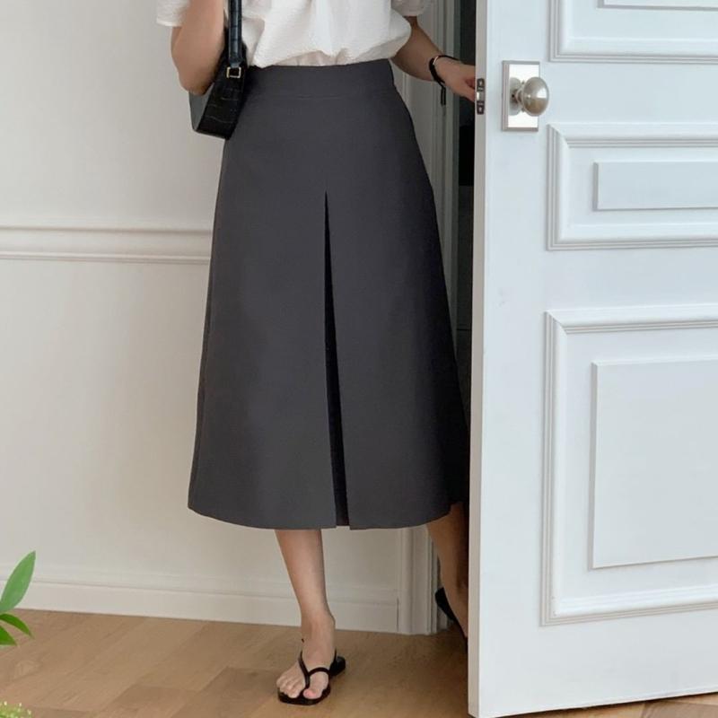 절개치마 여성롱치마 미디스커트 정장스커트 스판스커트 롱스커트 오피스룩스커트 롱치마 A라인치마 출근룩 뒷밴딩스커트 밴딩스커트 가을스커트 하객룩 모던핏 유니크한 모던핏 스타일리시한 플리츠스커트