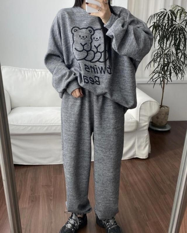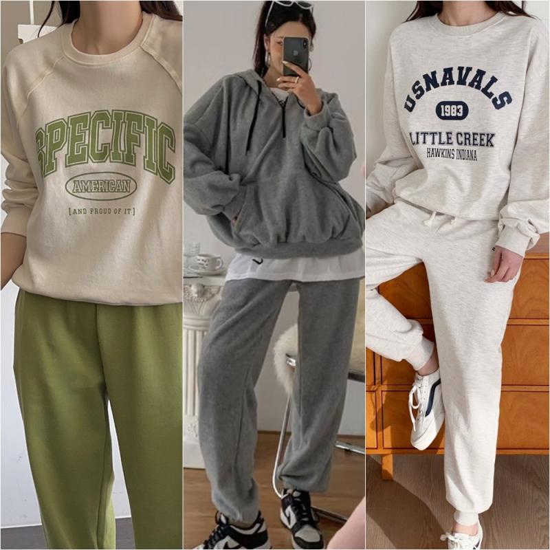 맨투맨, 트레이닝 팬츠 세트 제품으로 벨벳소재라 가을, 겨울 착용하기 !