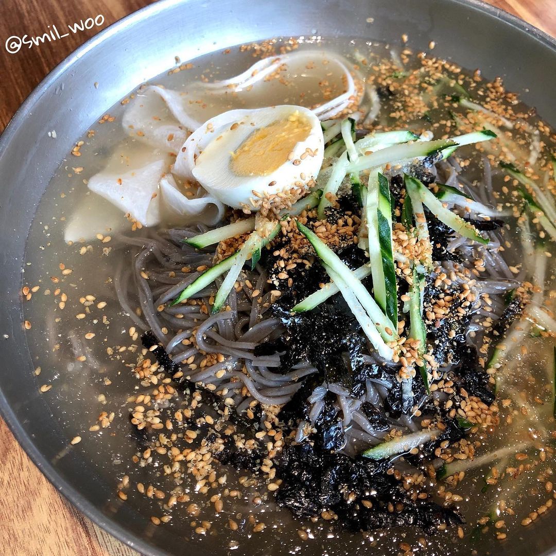 별로 안땡겼어서 기대도 안했는데 생각보다 너무 괜찮았다! 면에서 메밀맛이 은은하게 나고 국물도 시원하니 맛있음👍