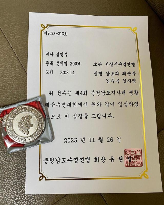 서산수영연맹 천안수영대회 충남도지사기대회 수영에진심 동호회 수영가족 종랍3위 혼계영 배평접자 수영에진심