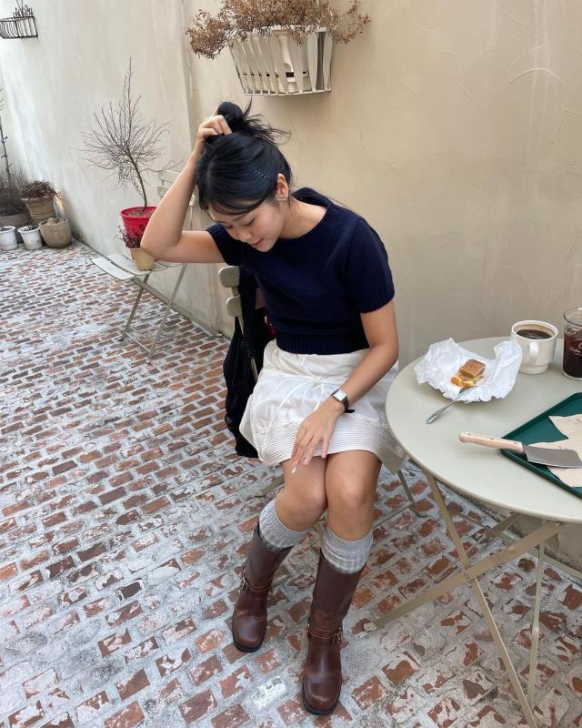 보트넥니트는 시보리가 잘 잡아줘서 스커트랑 매치하기 너무 . 볼륨스커트 검정,베이지 둘다 코디해봤거든요. 근데 둘다 넘 예뻐서😘 밴딩스커트 사랑🫶🏻 베이지 컬러는 이번에 입고되었어용. 함께 업뎃해둘게요!