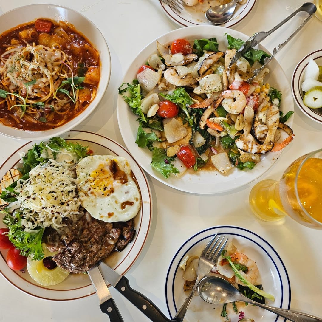 꾸덕꾸덕 진한 맛의 머쉬룸 해산물 스파게티는 집에서 아무리 따라 해 봐도 절대 낼 수 없는 맛이라 갈 때마다 감탄하게 돼요. 😋