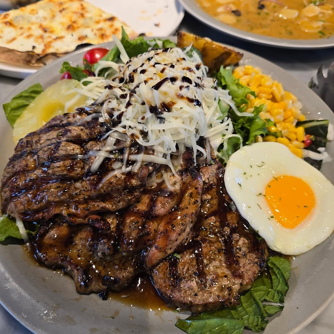 그리고 부드러운 그릴 스테이크에 곁들여 나오는 샐러드는 신선한 야채와 맛있는 스테이크의 조화가 언제나 만족스러워요.