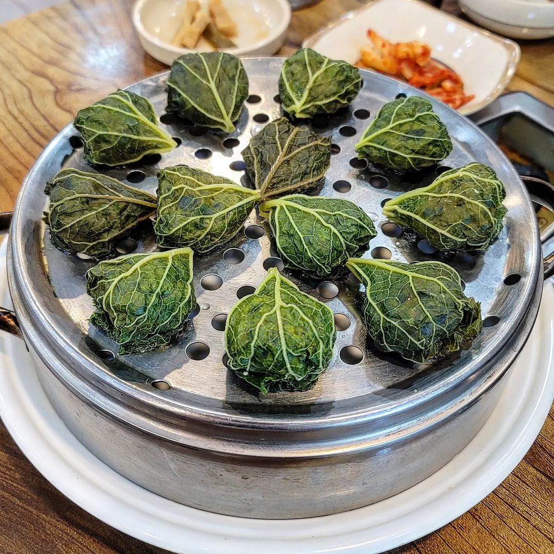 -이집 별미 곰취 만두는 곰취나물로 만든 만두로 밀가루로 만든 만두와는 전혀 다른 식감이지만 곰취향기에 놀라고 입안에서 터지는 육즙에 눙물을 흘린다.🥟