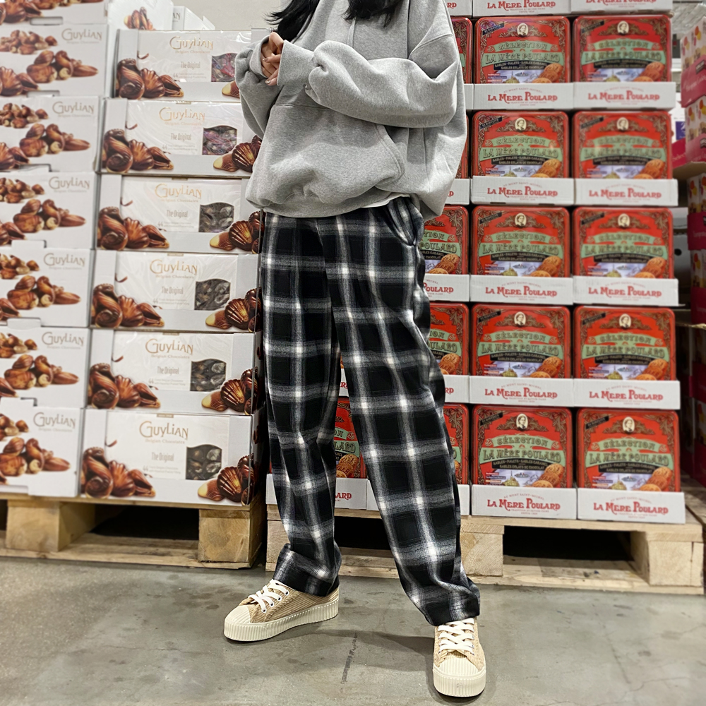 편하고 예쁘고 저렴하기까지한(치킨값) 체크와이드팬츠! 인기 많음^^ 맨투맨 같은 이지아이템은 물론 자켓이랑도 잘 어울려요:) 허리밴딩으로 사이즈에 구애없이 편안하게 착용 가능해요. 남녀 공용이라 커플팬츠로도 추천!