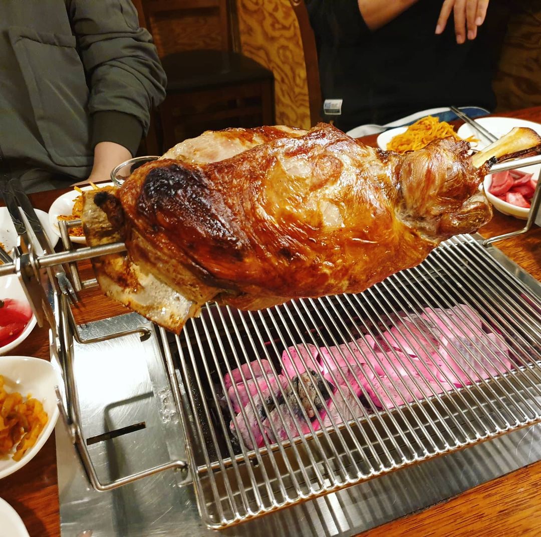 양다리통구이 같은 경우 미리 예약을 하고 가야해요~최소 3시간전에 예약라면 사진과 같이 초벌된 양다리를 바로 즐길 수 있어요!