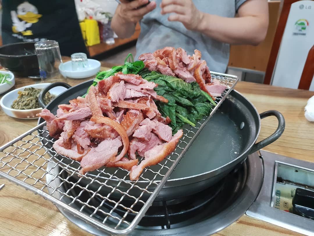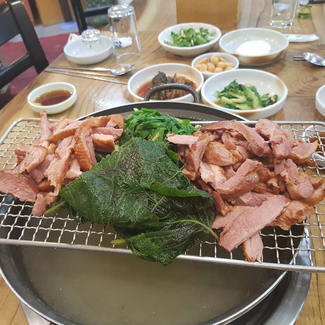 식당 이모님께 먹는 법을 전수받아 부추 및 깻잎과 함께 싸먹어봤는데 건강과 맛을 동시에 챙기는 기분이든다.