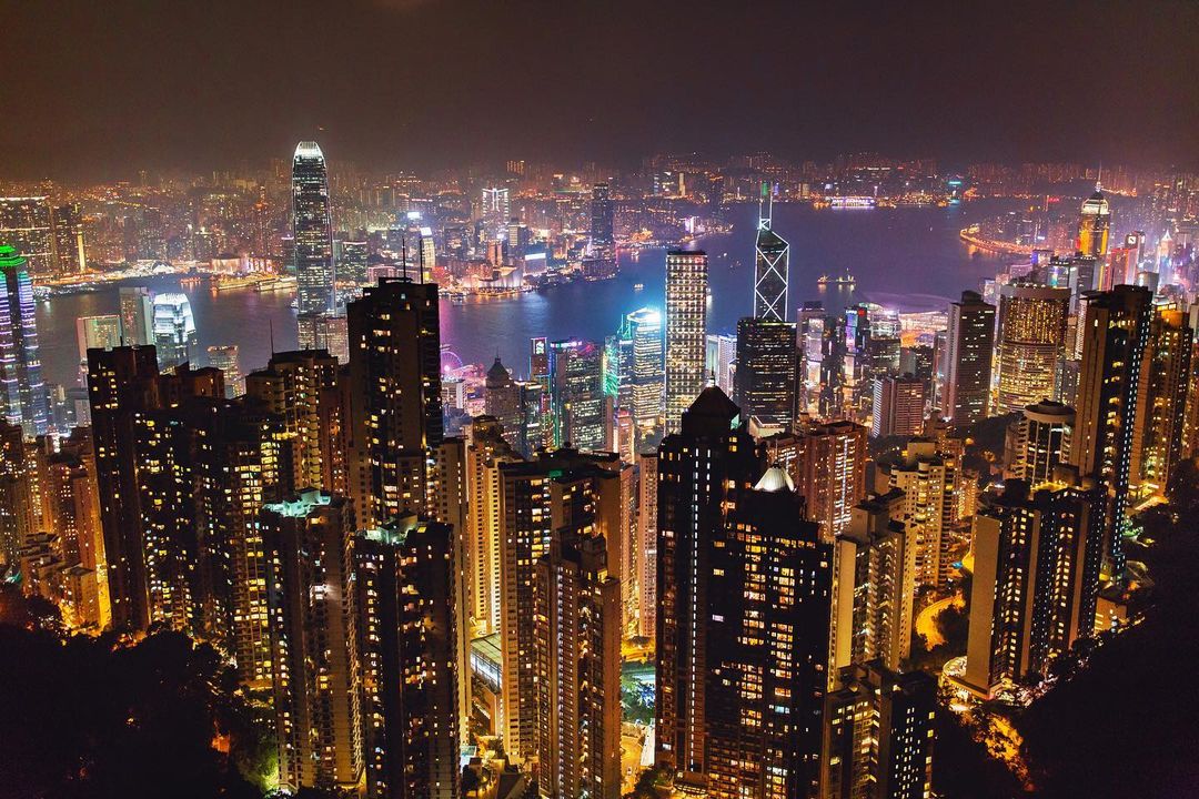 홍콩의 빌딩 숲과 빅토리아 하버의 아름다운 야경을