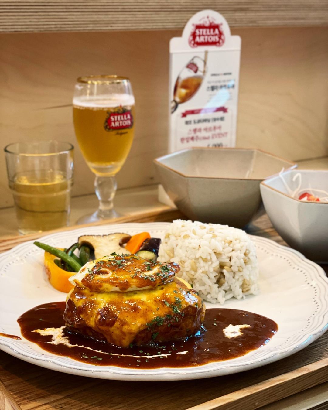 함박스테이크는 햄버거 패티와는 달라야 한다고 생각한다. 시어링이나 마이야르 반응 같이 고기 자체의 풍미를 끌어올리는 것 보다는, 부드러운 식감과 담백한 고기의 맛을 살려서 소스, 밥과 잘 어우러지게 하는 것이 더 중요하다고. 이 곳의 함박스테이크가 딱 그렇다.