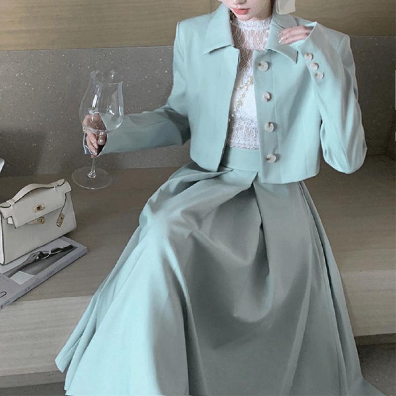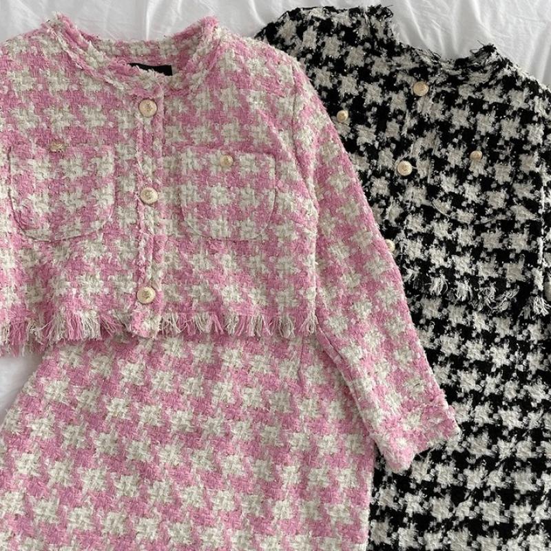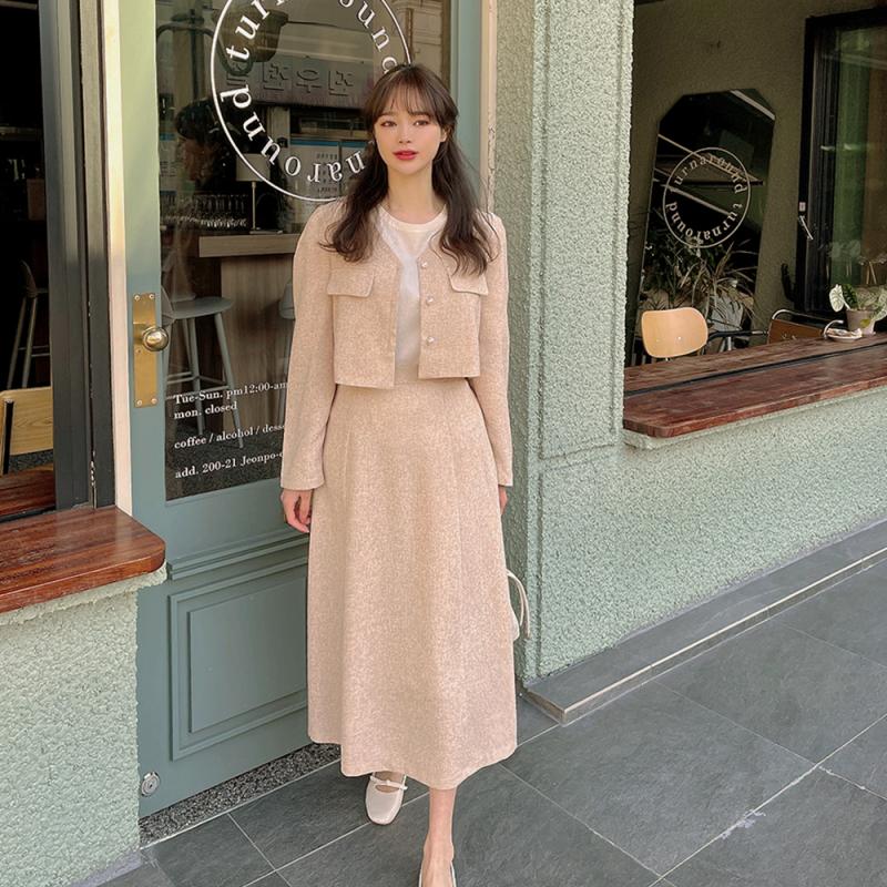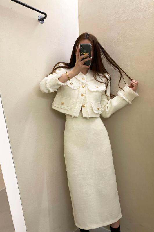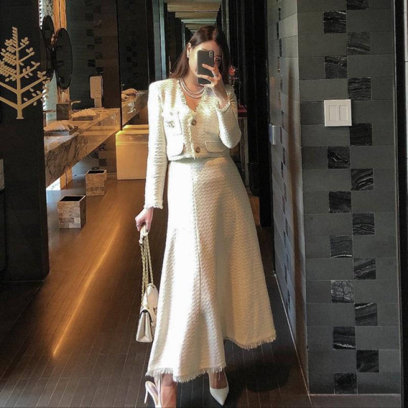 고급 하객 크롭 자켓 롱스커트 트위드 투피스 세트