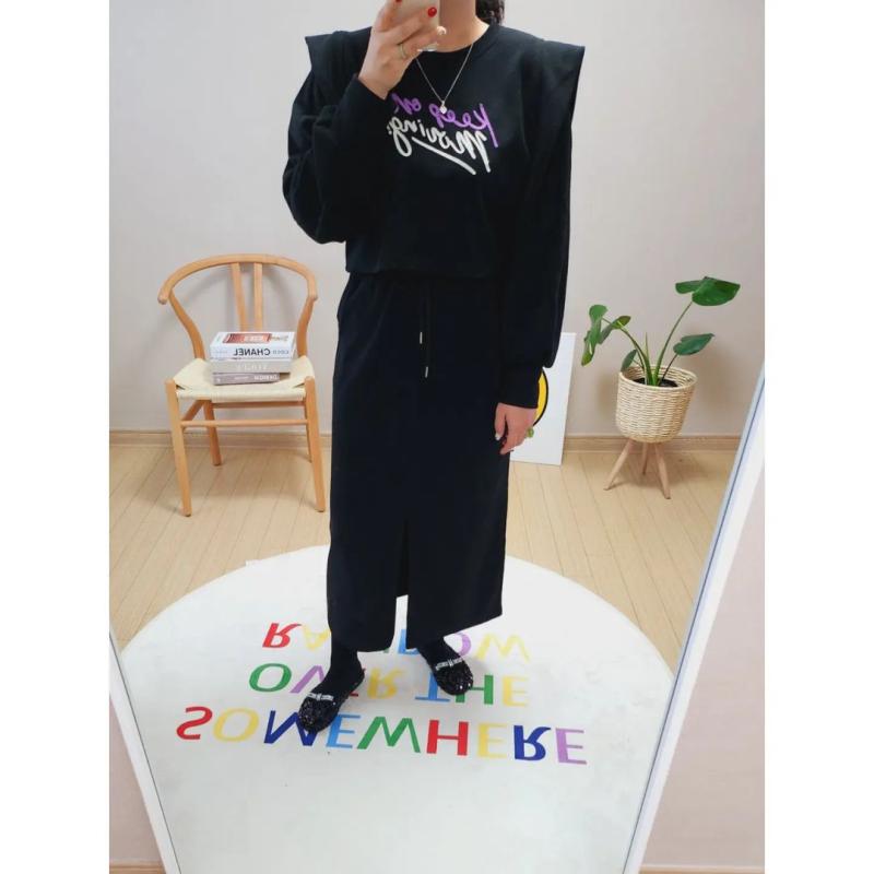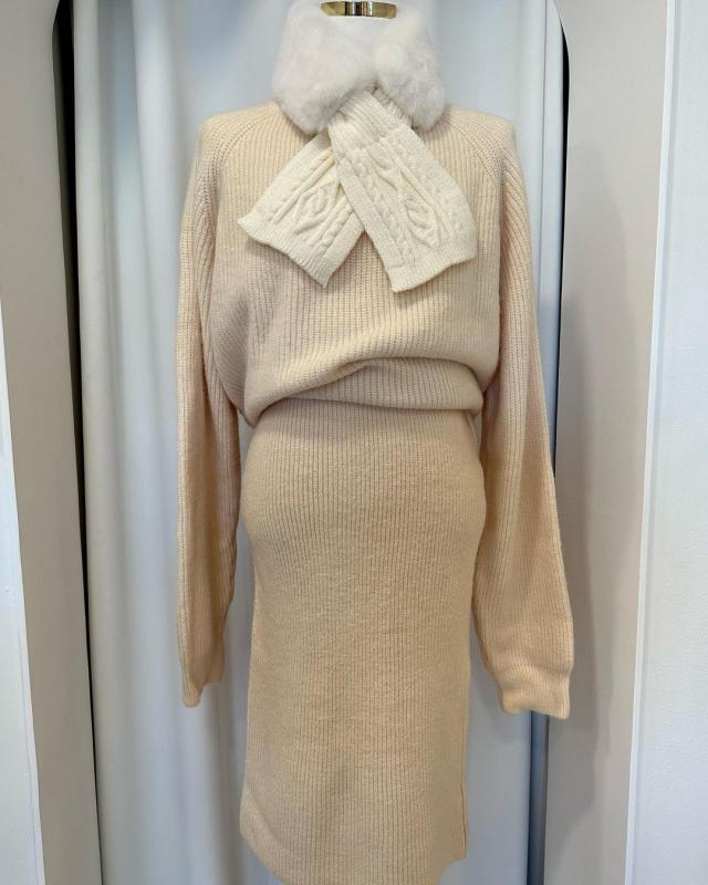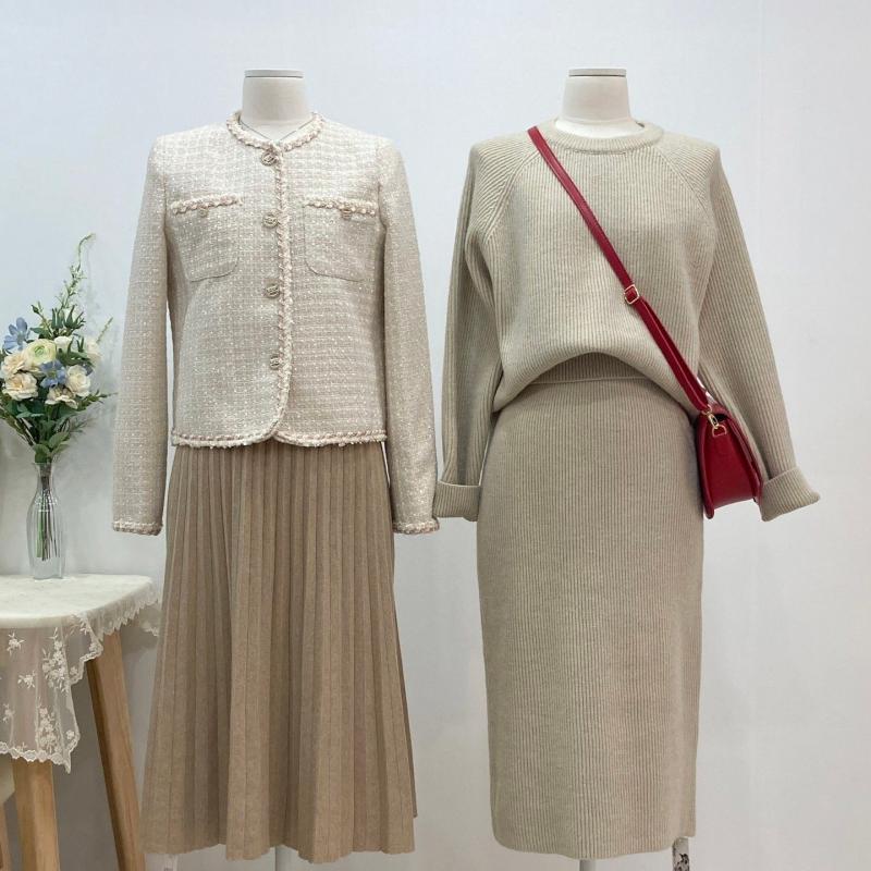 크리스탈 비즈 포인트로 다양한 코디가 가능한 니트&스커트입니다.