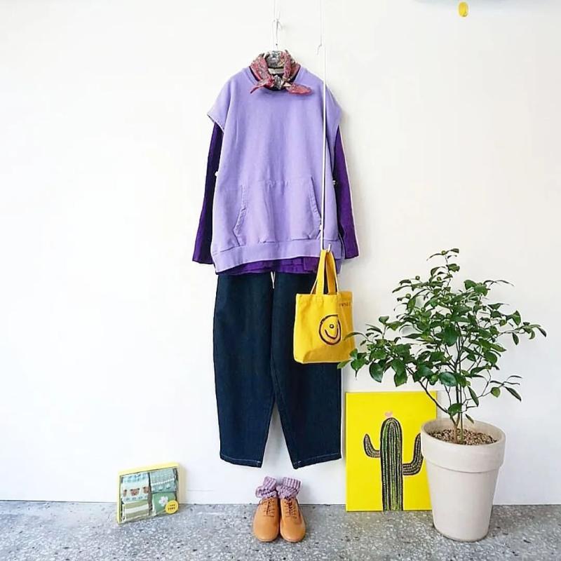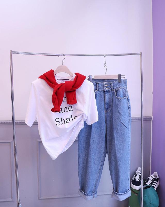 경쾌하게 떨어지는 기장감은 전체적인 발란스를 멋스럽게 잡아주네요.