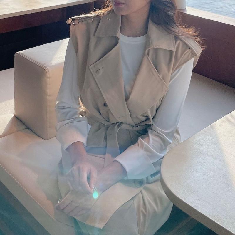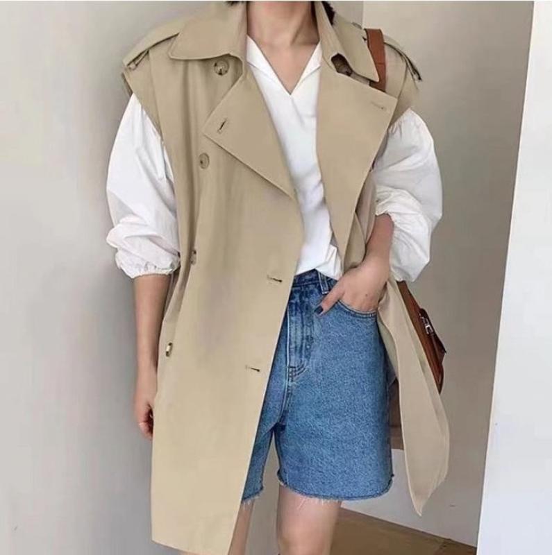 여자 봄 가을 롱 베스트 트렌치 조끼